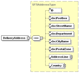 | <cac:BuyerParty> <cac:Party> <cac:PartyIdentification> <cac:ID identificationSchemeAgencyID="9"> 7365565626575</cac:ID> </cac:PartyIdentification> <cac:PartyName> <cbc:Name> Lillsjö kommun</cbc:Name> </cac:PartyName> +<cac:Address> +<cac:PartyTaxScheme> <cac:Contact> <cbc:Name> Anders Johnsson</cbc:Name> <cbc:Telephone> 0123123456</cbc:Telephone> <cbc:Telefax> 0123316547</cbc:Telefax> <cbc:ElectronicMail> a@b.se</cbc:ElectronicMail> </cac:Contact> </cac:Party> </cac:BuyerParty> |
