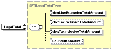 | <cac:LegalTotal> <cbc:LineExtensionTotalAmount amountCurrencyID="SEK"> 4000</cbc:LineExtensionTotalAmount> <cbc:TaxExclusiveTotalAmount amountCurrencyID="SEK"> 3815</cbc:TaxExclusiveTotalAmount> <cbc:TaxInclusiveTotalAmount amountCurrencyID="SEK"> 4769</cbc:TaxInclusiveTotalAmount> <cac:RoundOffAmount amountCurrencyID="SEK"> 0.25</cac:RoundOffAmount> </cac:LegalTotal> |