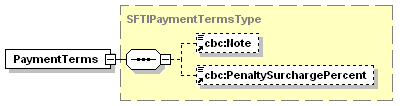 | <cac:PaymentTerms> <cbc:Note> Betalningsvillkor</cbc:Note> <cbc:PenaltySurchargePercent> 12</cbc:PenaltySurchargePercent> </cac:PaymentTerms> |